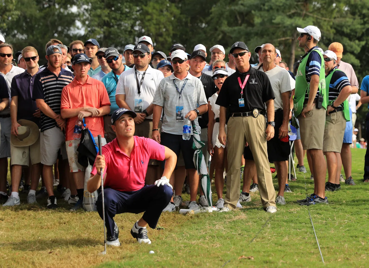 Needing to pipe a full-tilt seven iron, Thomas caught it perfectly, hitting to eight feet and celebrating with a club twirl.