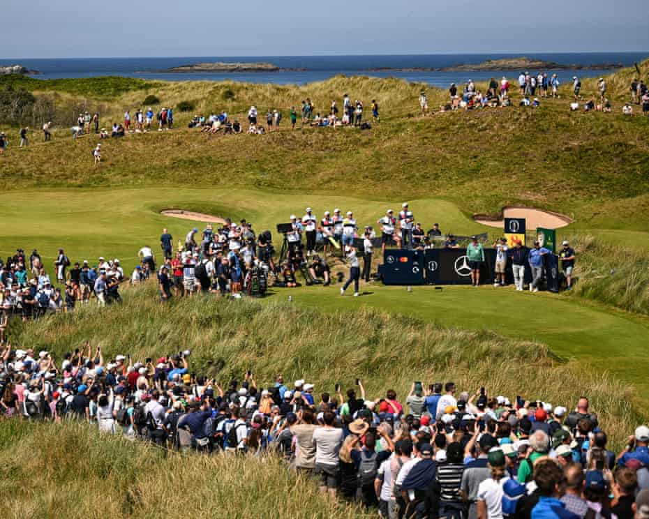 There was a lick of breeze riffling the long grass at Royal Portrush on Wednesday morning, and a lot of swirling talk besides. “Have you seen him?” “I heard he’s over by the putting green.” “He’s on the range.” “I heard he’s on the 1st now.” Round here everyone’s either looking for Rory McIlroy, looking at Rory McIlroy, or looking back on Rory McIlroy. A stretch of time watching him play is the one thing everyone wants to tick off during their day at the Open, along with a trip to the spectator village and a stop at the golf shop. You can track his progress around the grounds by keeping one ear open for the whispers.